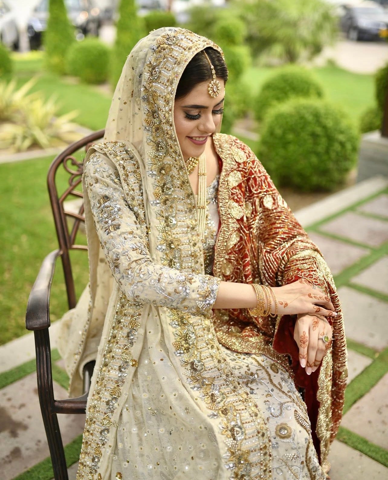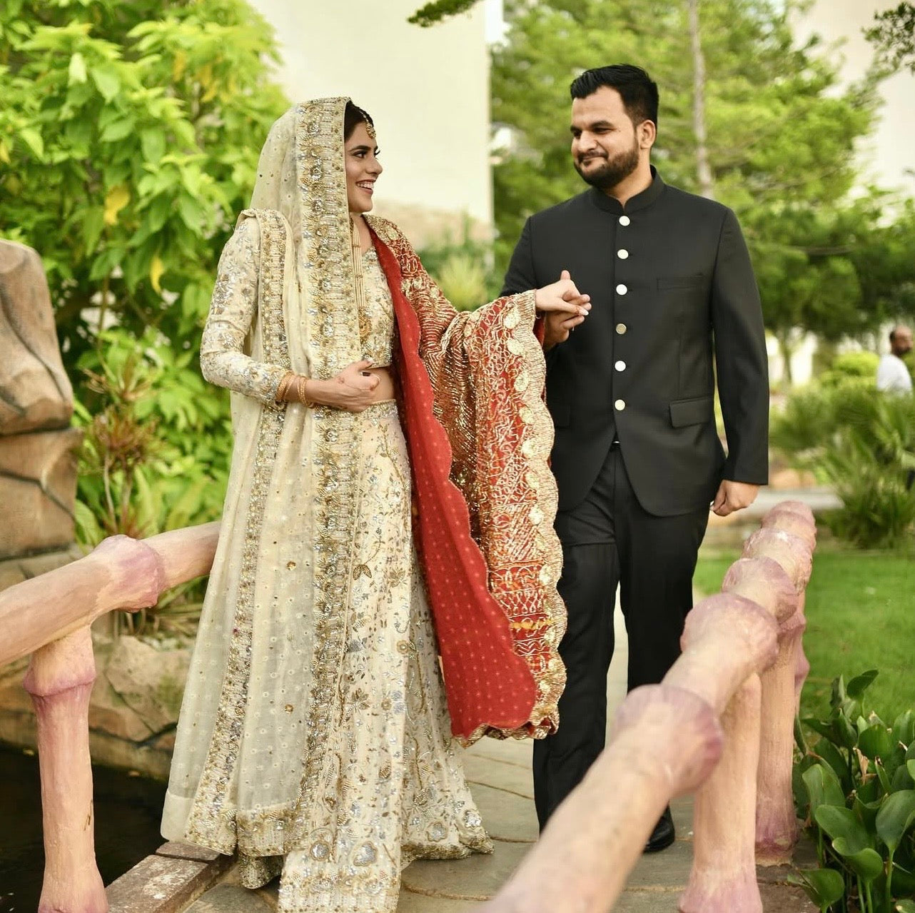 Crafted in luxurious premium fabrics, this ivory bridal lehenga choli is designed in a flattering, sculpted silhouette that enhances the bride’s natural grace while allowing effortless movement.